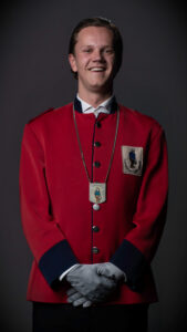 Hij is d’r weer bij hoor: Maxim Taborsky, oftewel MAXIMAALL! 22 jaar jong, geboren en getogen in ons mooie Kruikenstad. Dit jaar trekt hij voor de tweede keer zijn rode jasje aan bij de lijfwacht en dat voelt nog altijd een beetje onwerkelijk. Want wat was dat eerste jaar een feest… dat smaakte duidelijk naar meer! Voor het tweede jaar op rij is hij dus van de partij bij de lijfwacht, al moet hij zijn maten van C.V. ’t Kanneke dit keer even missen. Maar ach, je weet hoe dat gaat: die komen elkaar vast wel weer ergens tegen en dan is het gewoon dubbel zo gezellig!